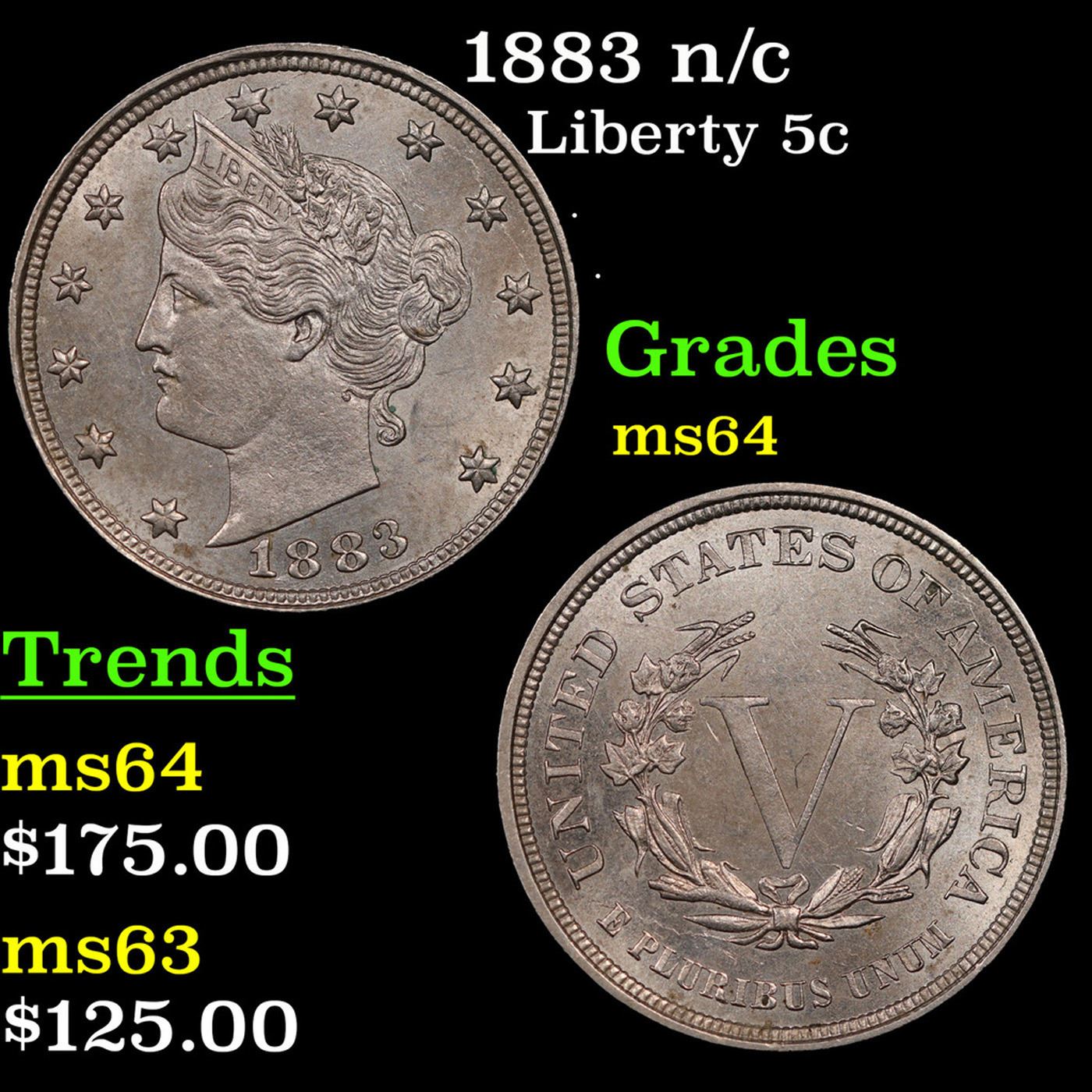 1883 n/c Liberty Nickel 5c Grades Choice Unc.