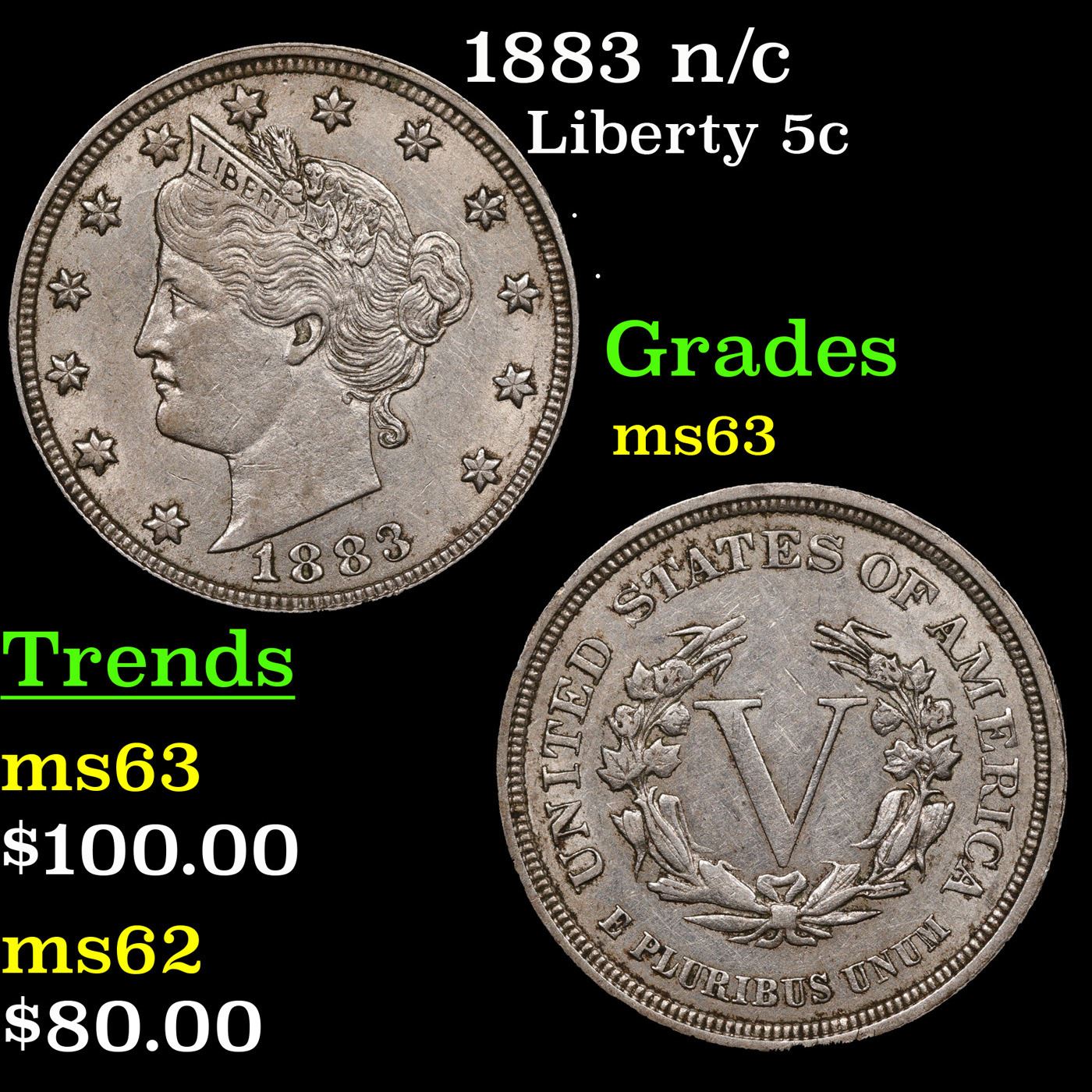 1883 n/c Liberty Nickel 5c Grades Select Unc.