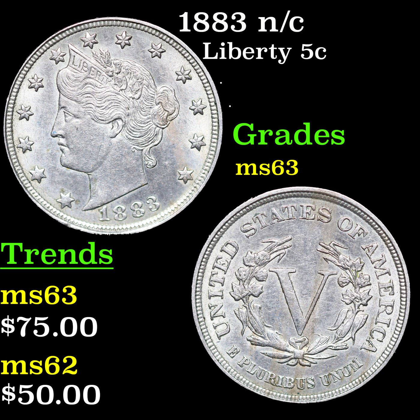 1883 n/c Liberty Nickel 5c Grades Select Unc.