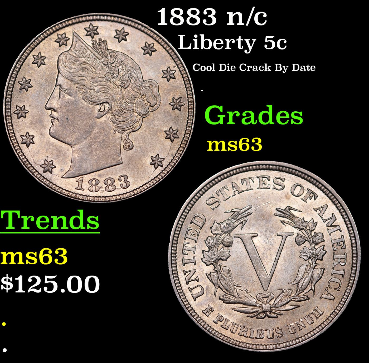 1883 n/c Liberty Nickel 5c Grades Select Unc.
