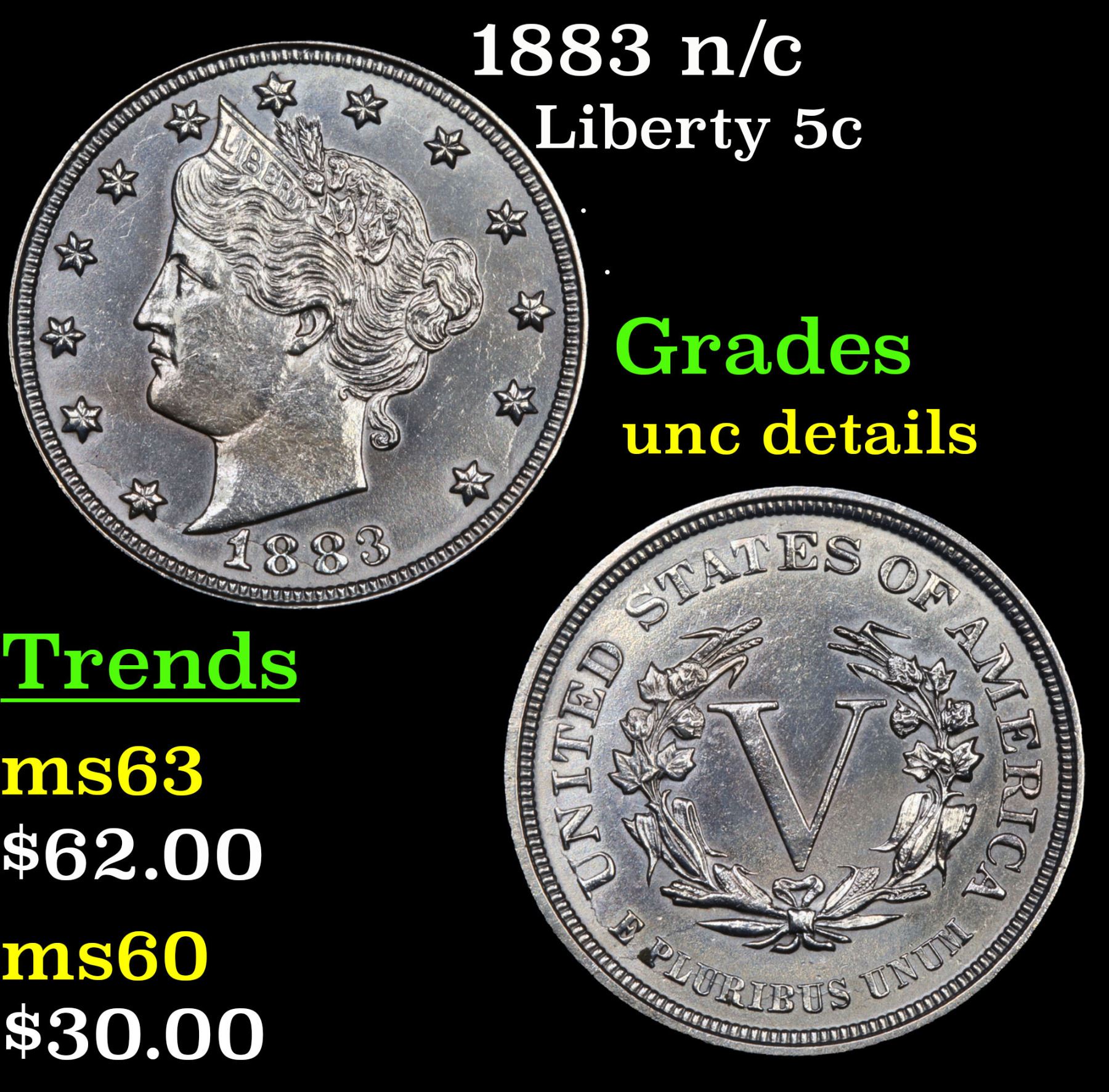 1883 n/c Liberty Nickel 5c Grades Unc Details.