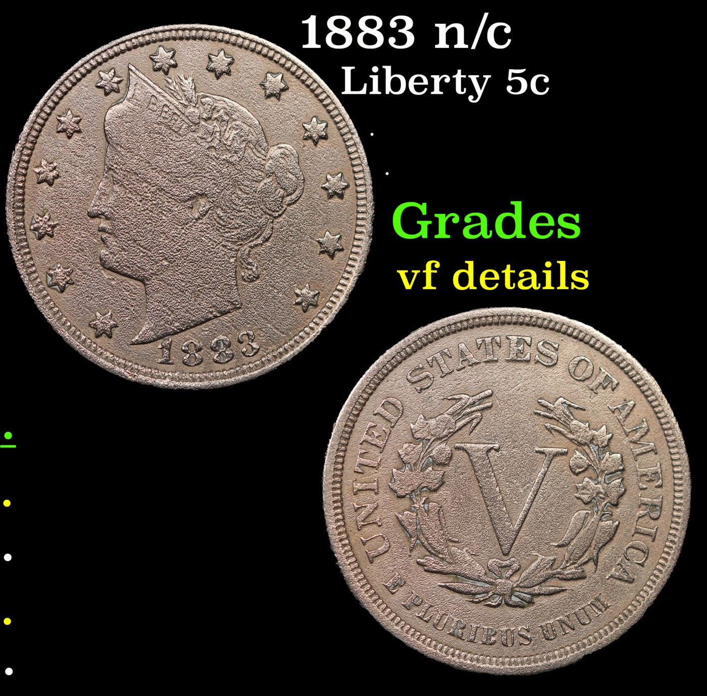 1883 n/c Liberty Nickel 5c Grades vf details.