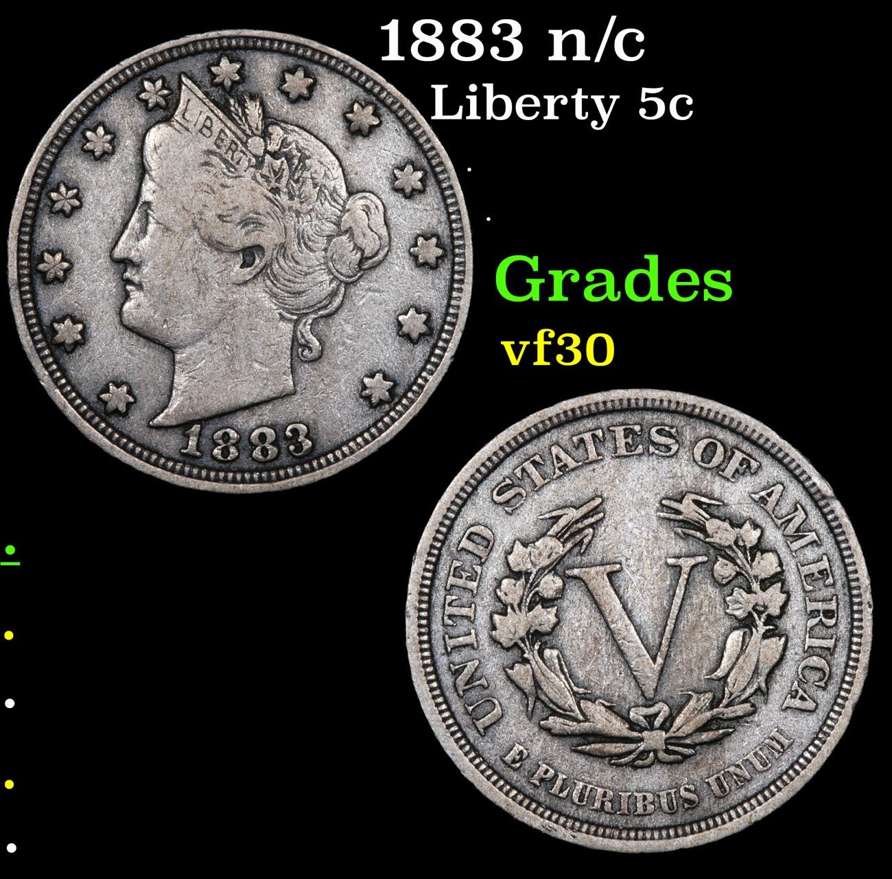 1883 n/c . . Liberty Nickel 5c Grades vf++.