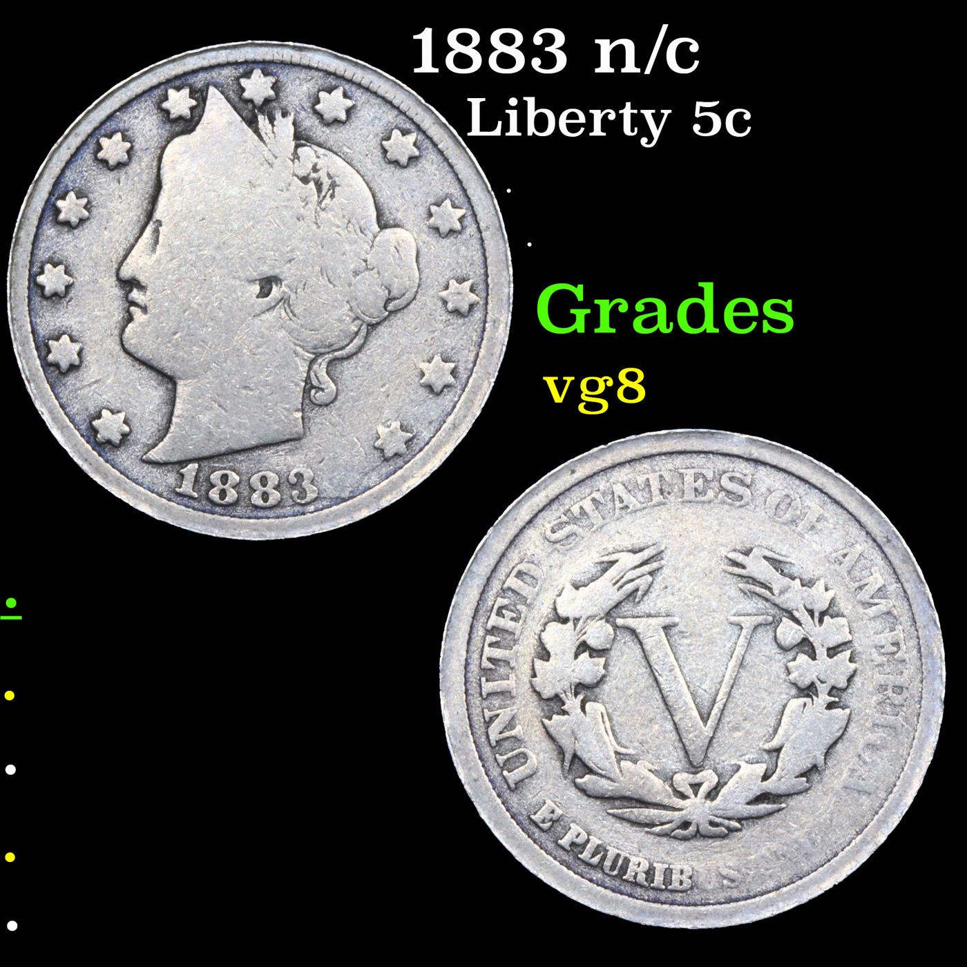 1883 n/c Liberty Nickel 5c Grades vg, very good.