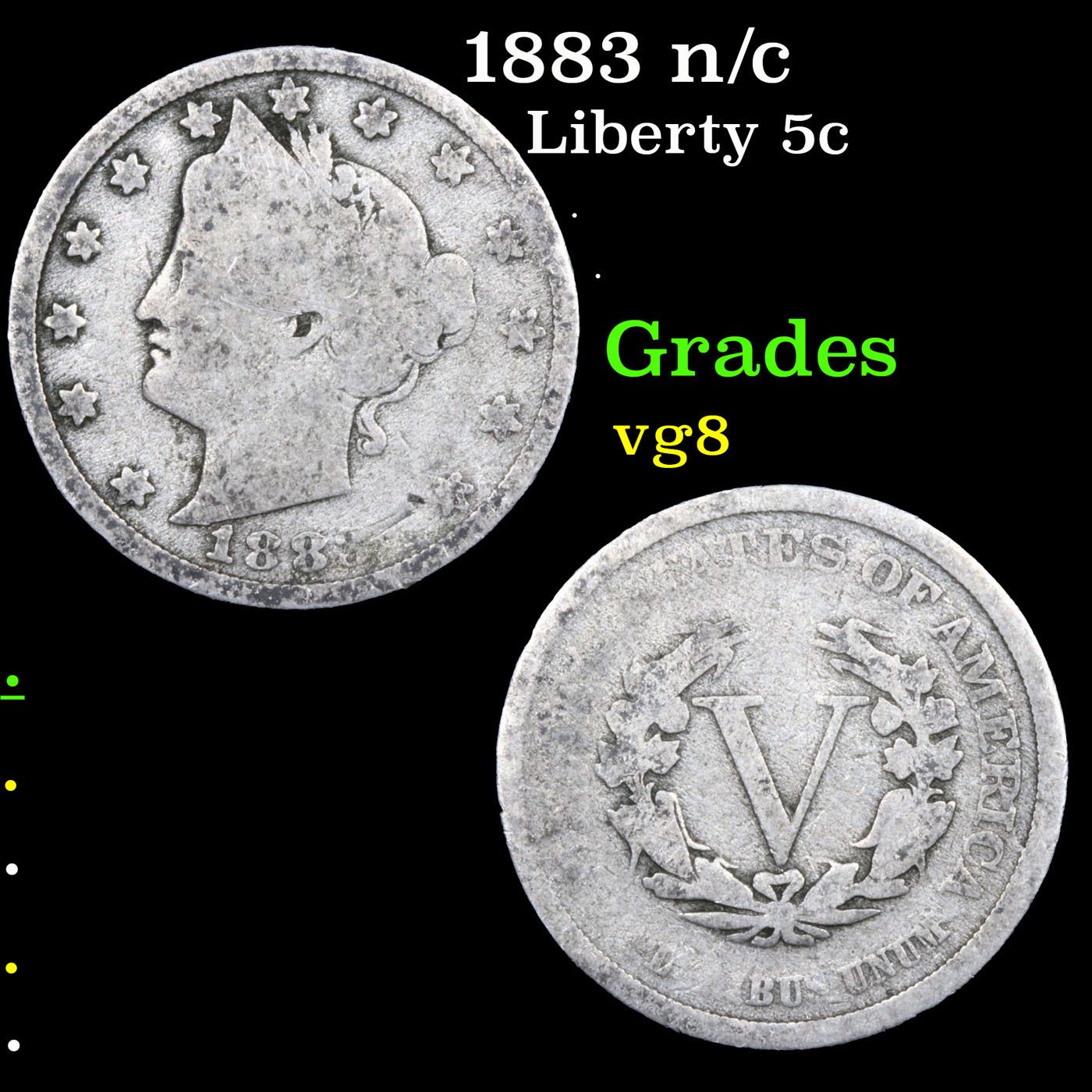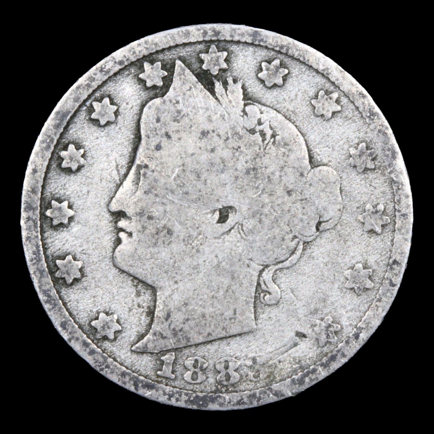 1883 n/c Liberty Nickel 5c Grades vg, very good.