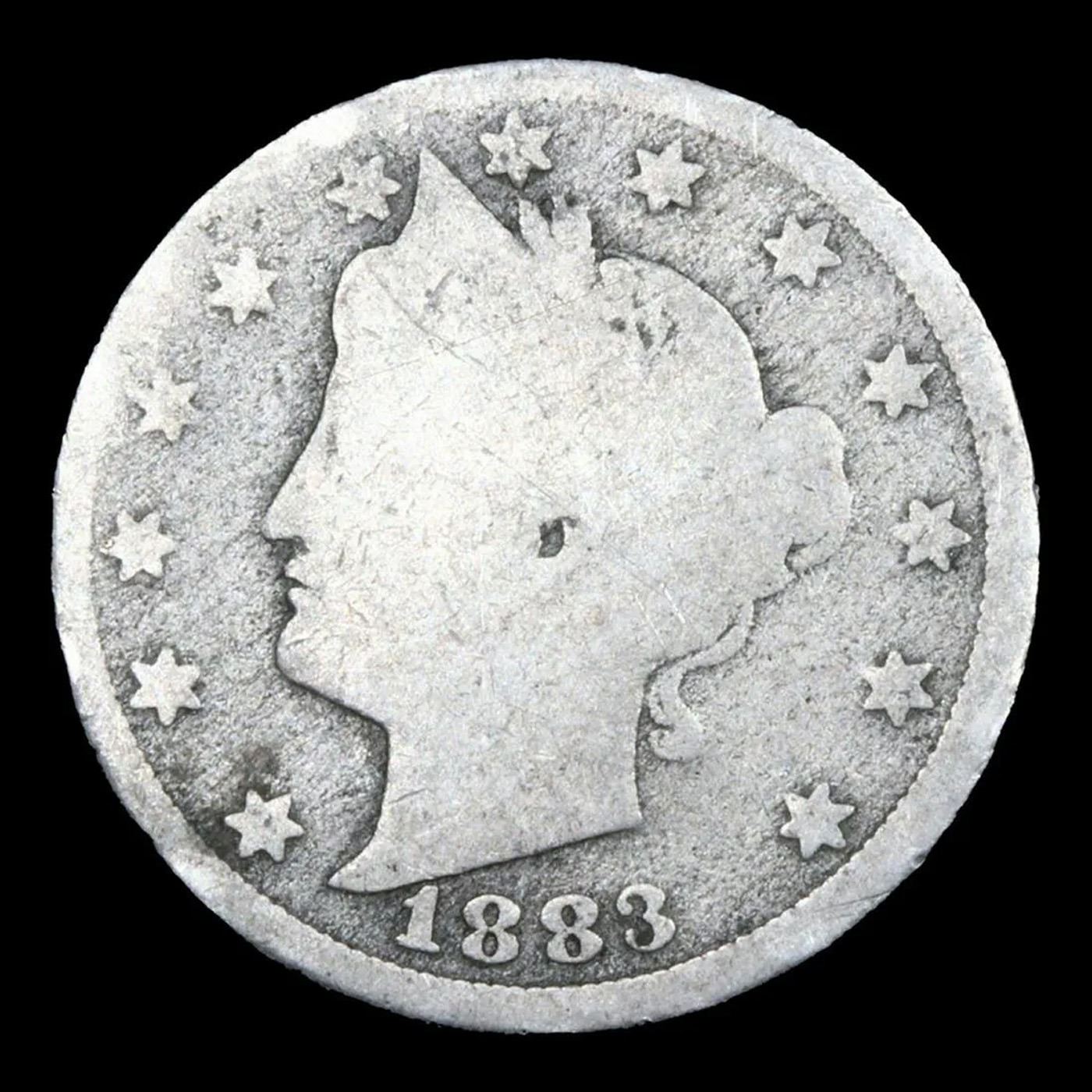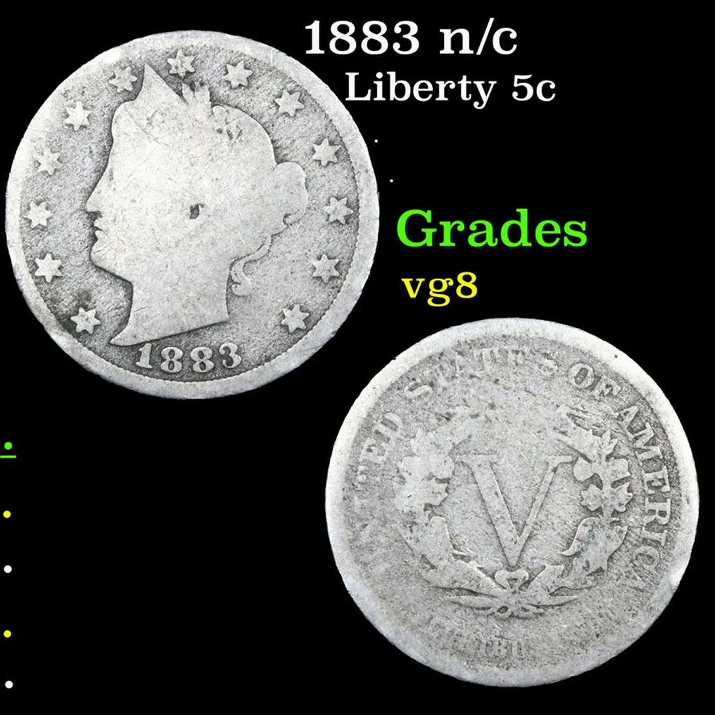 1883 n/c Liberty Nickel 5c Grades vg, very good.