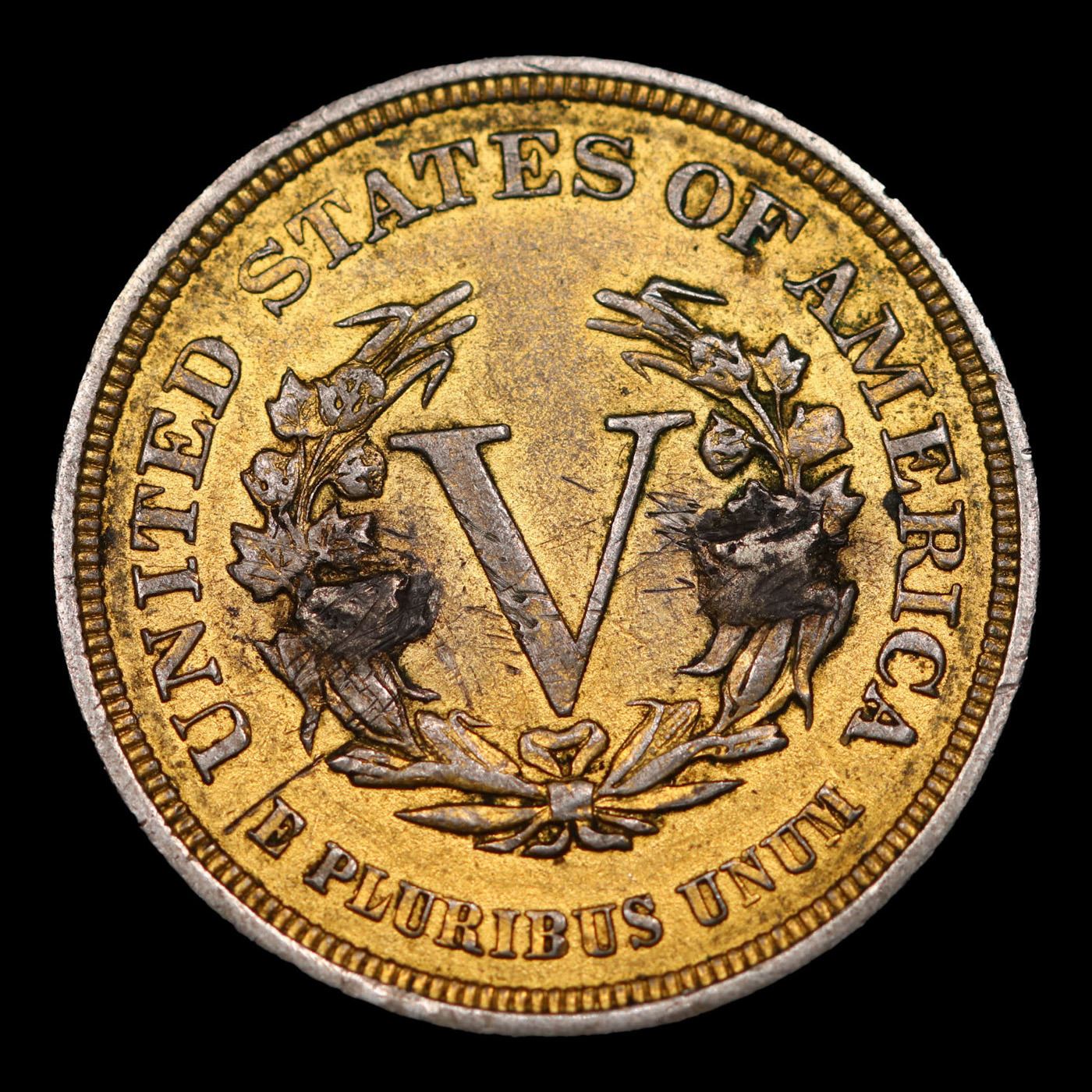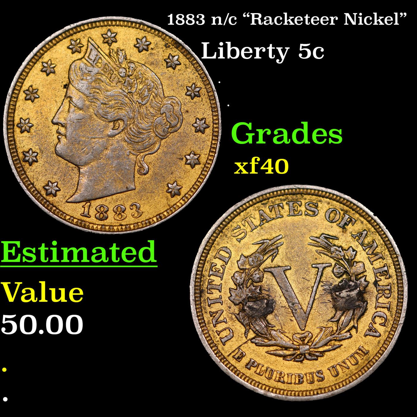 1883 n/c "Racketeer Nickel" Liberty Nickel 5c Grades xf. the racketeer nickel was developed after the U.S. mint issued the Liberty nickel in 1883. On one side it had the head of Liberty. On the obverse, it simply had the Roman numeral V and nowhere did it spell out its value as 5 cents. As it so happened, the nickel was close in size to the $5 gold piece, which had a similar design. So, as the story goes, a man named Josh Tatum began gold-plating the nickels and passing them off as $5 gold coins, for instance buying a 5-cent cigar then placing the coin on the counter and getting $4.95 in change. When he was finally caught, he was exonerated since he was unable to speak, and thus never actually misrepresented the currency.