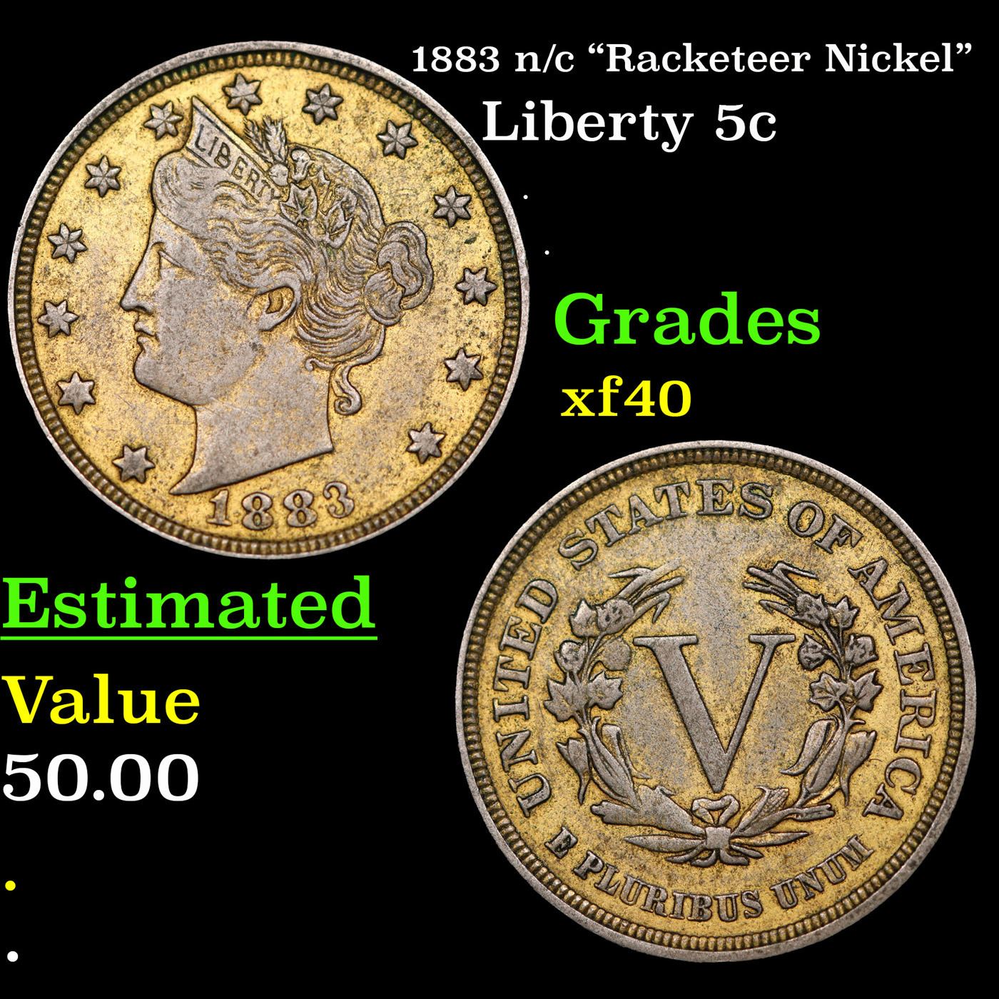 1883 n/c "Racketeer Nickel" Liberty Nickel 5c Grades xf. the racketeer nickel was developed after the U.S. mint issued the Liberty nickel in 1883. On one side it had the head of Liberty. On the obverse, it simply had the Roman numeral V and nowhere did it spell out its value as 5 cents. As it so happened, the nickel was close in size to the $5 gold piece, which had a similar design. So, as the story goes, a man named Josh Tatum began gold-plating the nickels and passing them off as $5 gold coins, for instance buying a 5-cent cigar then placing the coin on the counter and getting $4.95 in change. When he was finally caught, he was exonerated since he was unable to speak, and thus never actually misrepresented the currency.