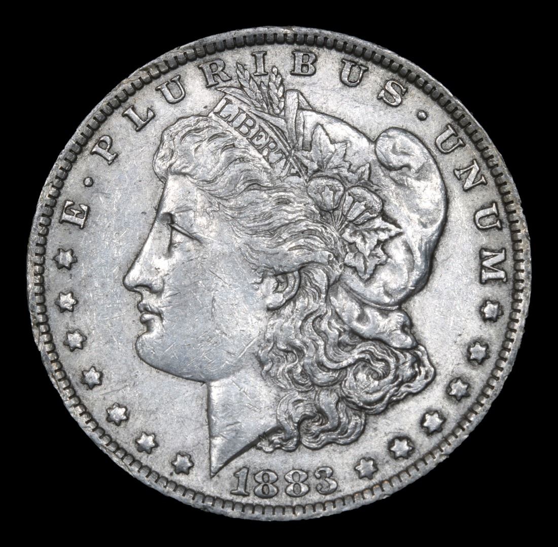 1883-o . Very Near Unc Morgan Dollar $1 Grades Choice AU/BU Slider.