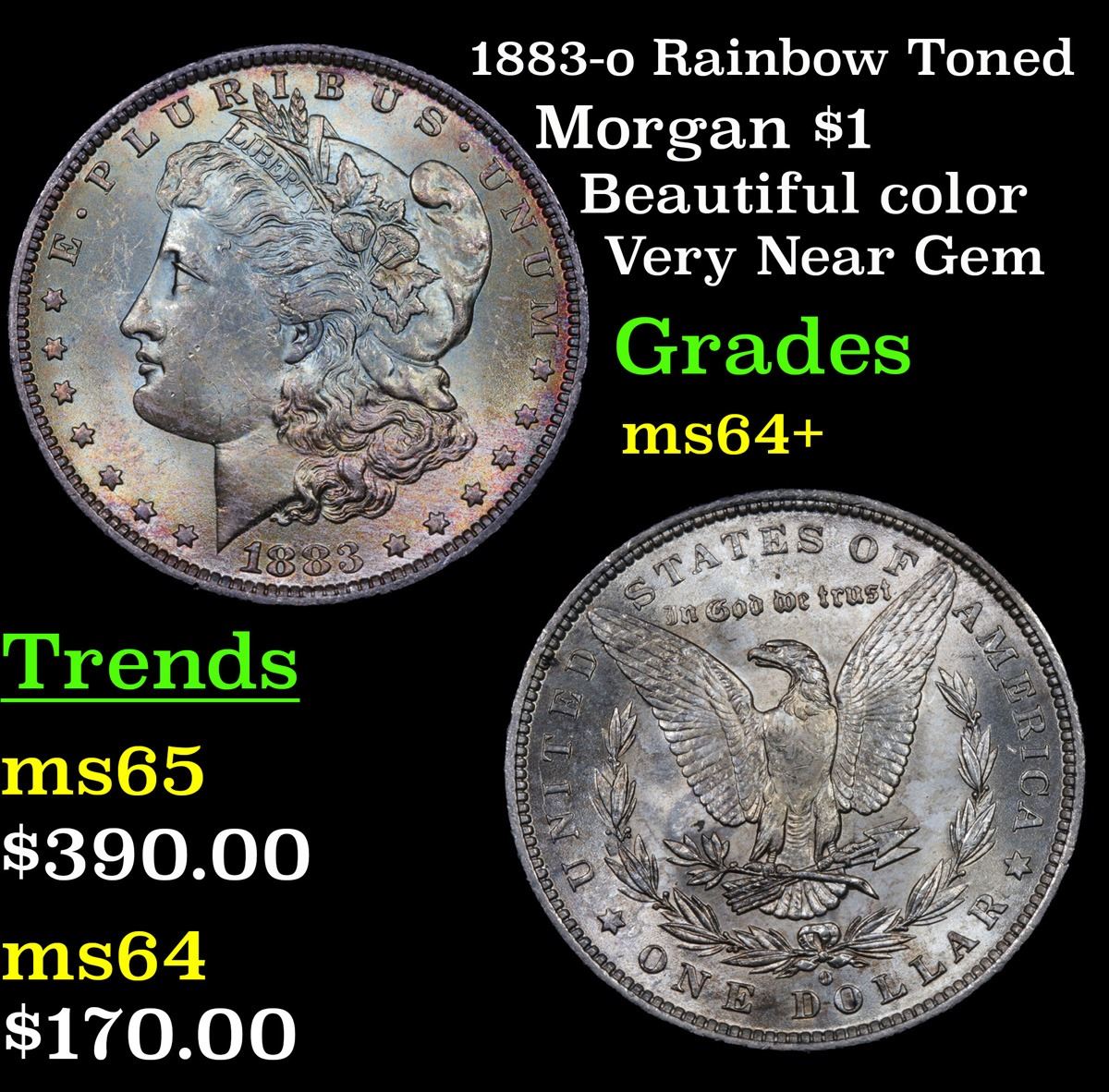 1883-o Rainbow Toned Morgan Dollar $1 Grades Choice+ Unc.