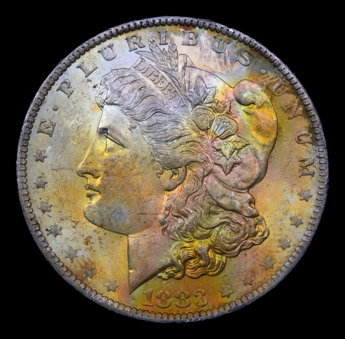 1883-o Rainbow Toned Morgan Dollar $1 Grades Choice Unc.