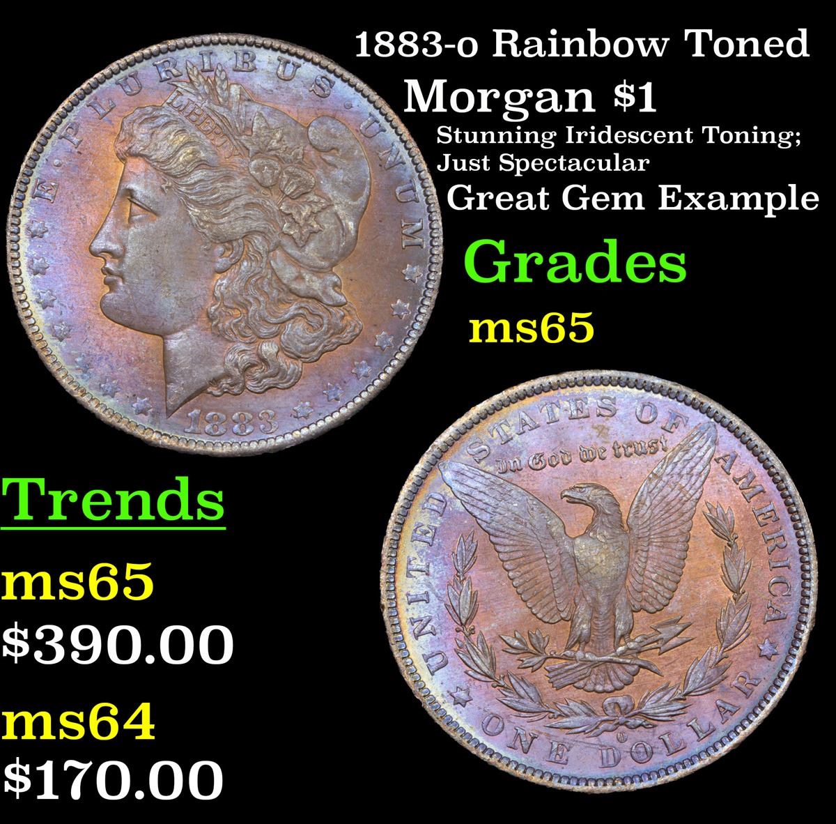 1883-o Rainbow Toned Morgan Dollar $1 Grades GEM Unc. A Corey's Pick