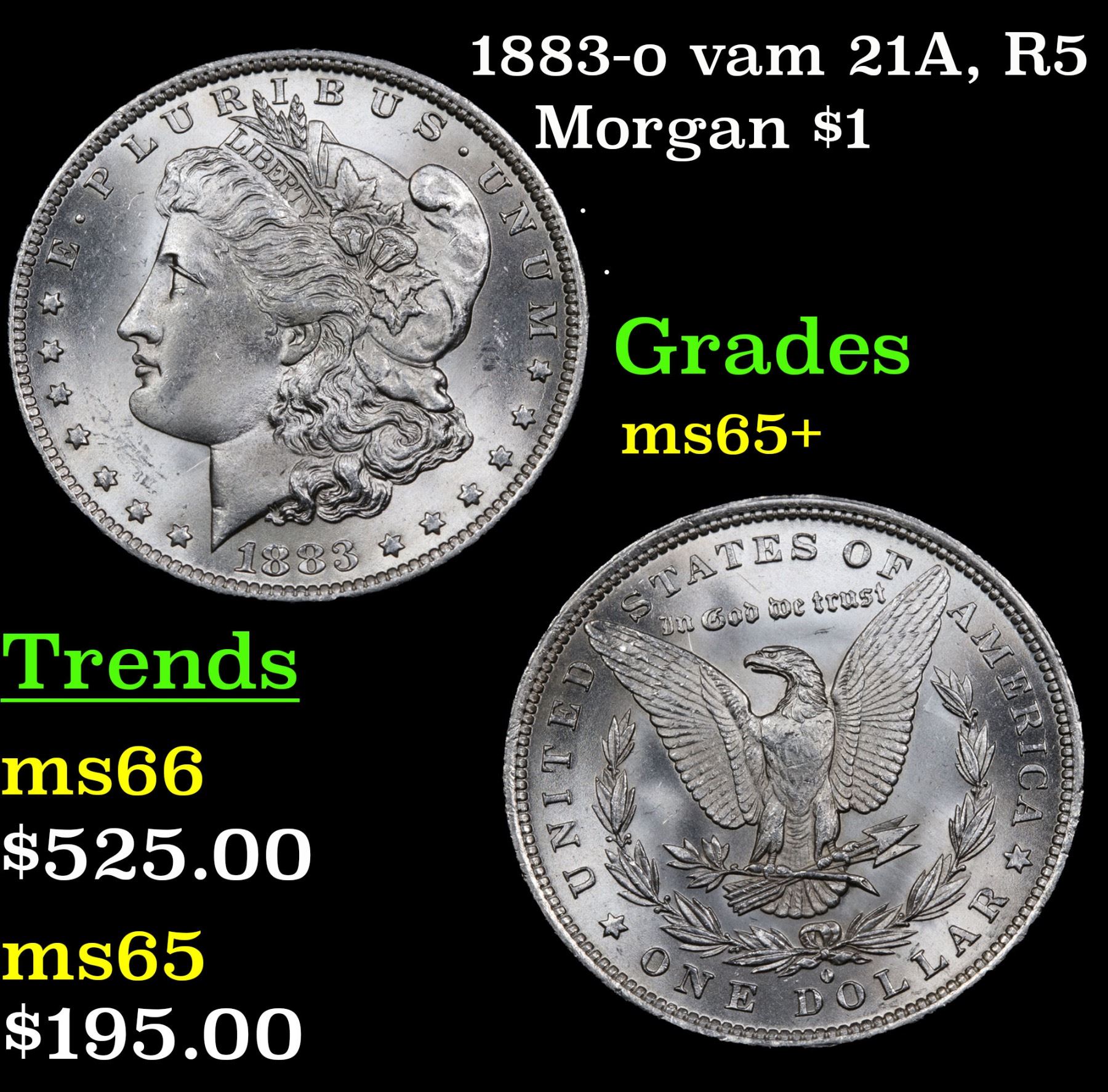 1883-o vam 21A, R5 Morgan Dollar $1 Grades GEM+ Unc.