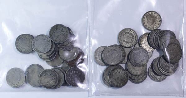 1883 onward Liberty Nickels, 48 pieces. 1883 without CENTS, 26 pieces. Others, 22 pieces. Mixed grades. Available for viewing at Danbury Office only.