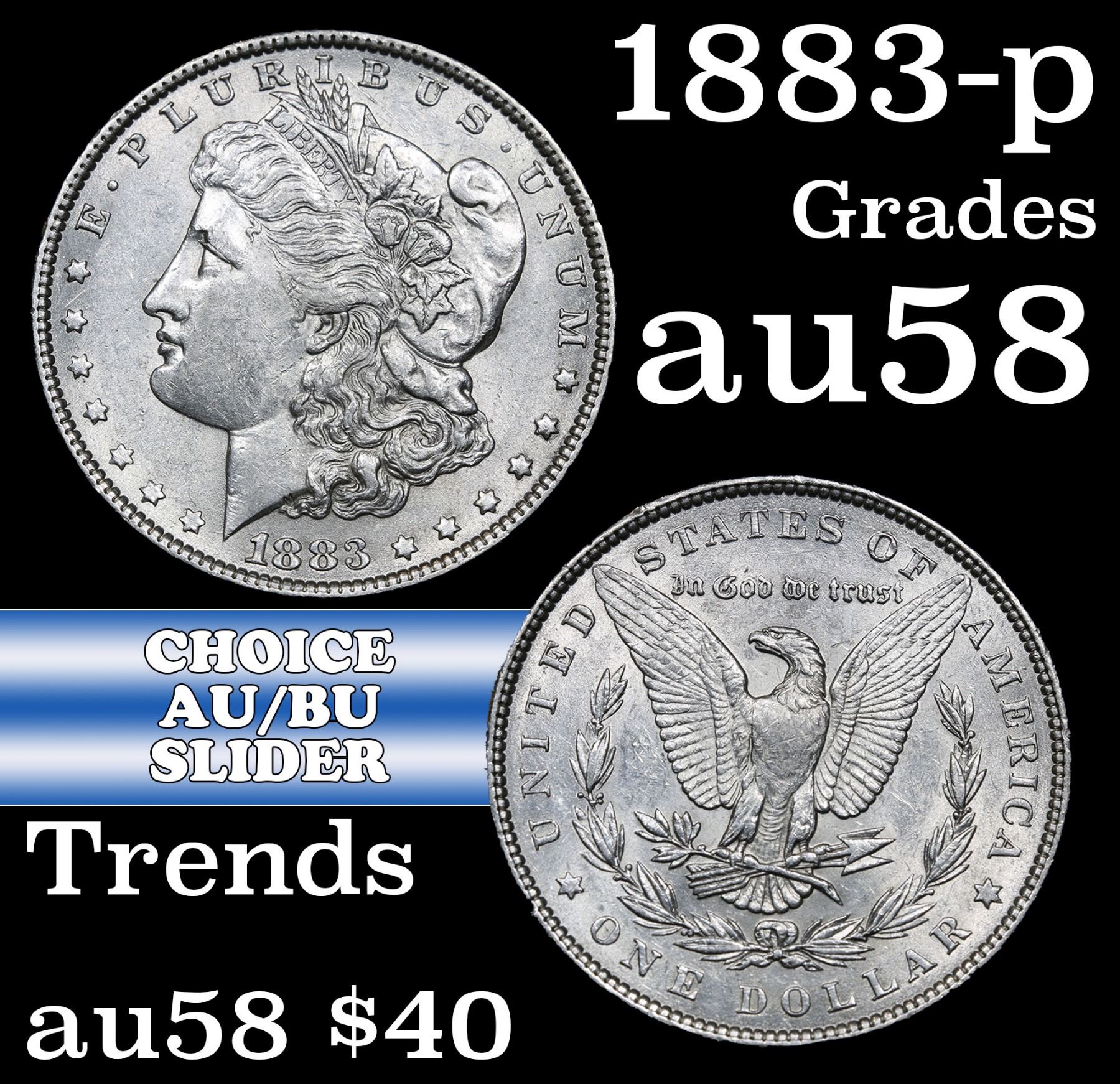 1883-p Morgan Dollar $1 Grades Choice AU/BU Slider.
