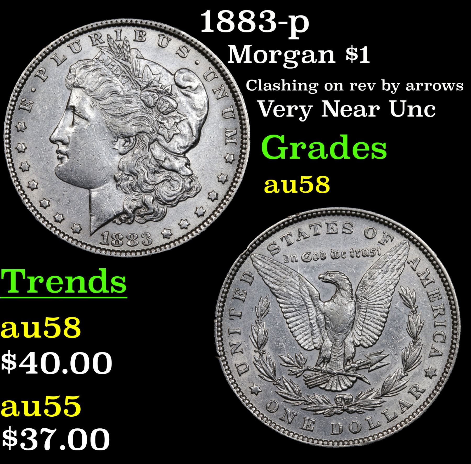 1883-p Clashing on rev by arrows Very Near Unc Morgan Dollar $1 Grades Choice AU/BU Slider.