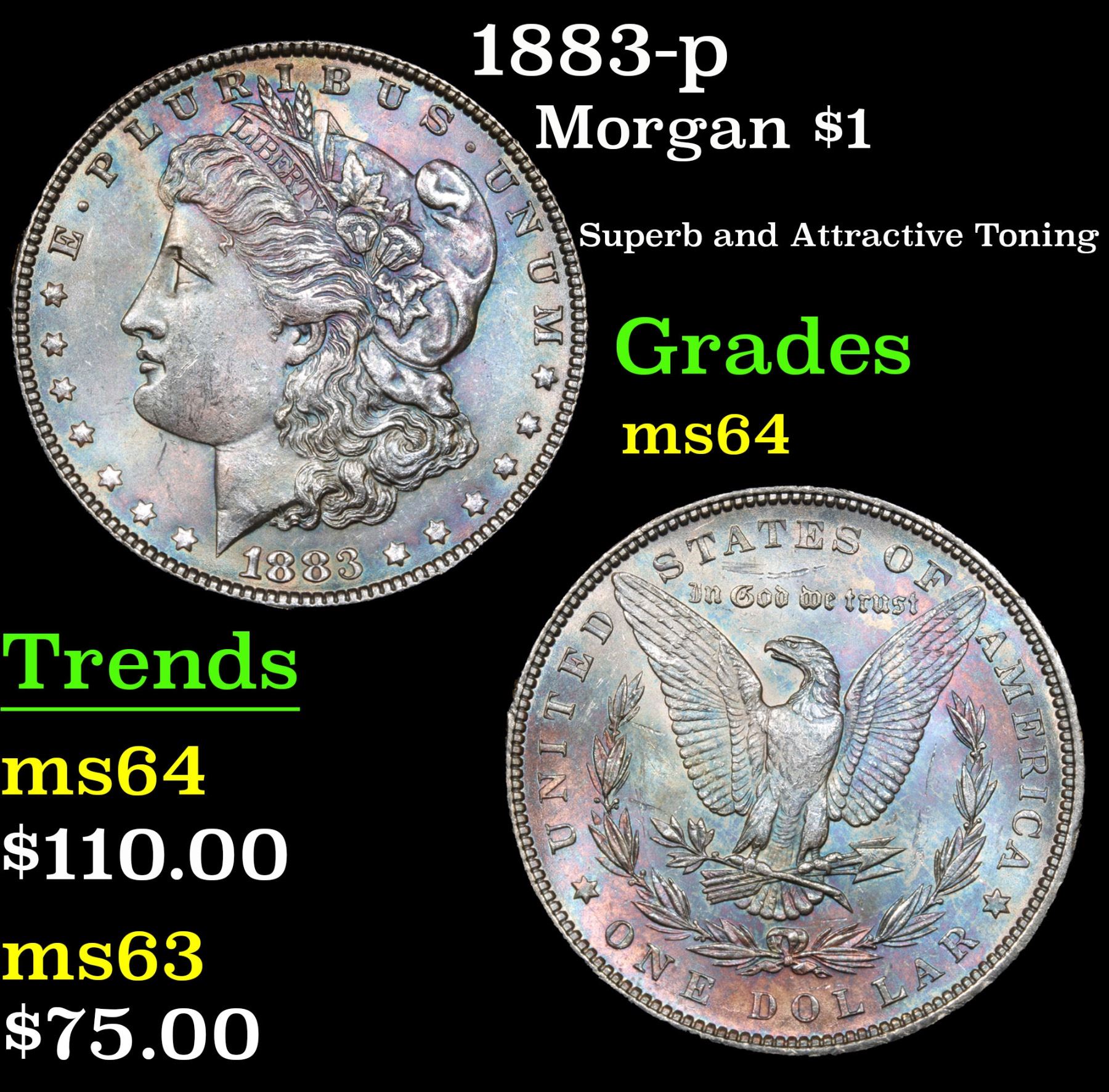 1883-p Morgan Dollar $1 Grades Choice Unc. Superb and Attractive Toning A Corey's Pick, Bid to Win, Don't let it get Away, you might not find its equal Coin