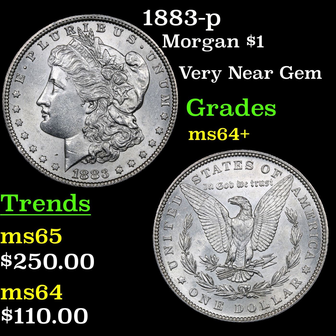 1883-p Morgan Dollar $1 Grades Choice+ Unc.