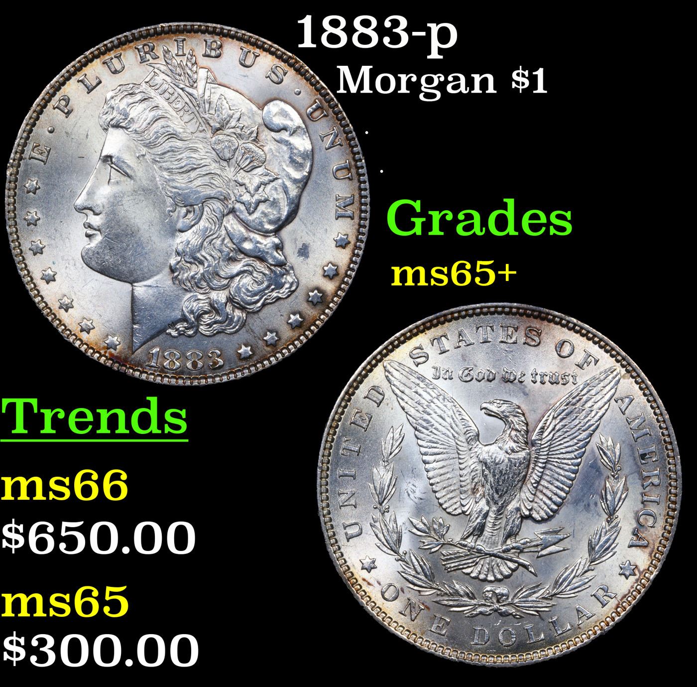 1883-p Morgan Dollar $1 Grades GEM+ Unc.
