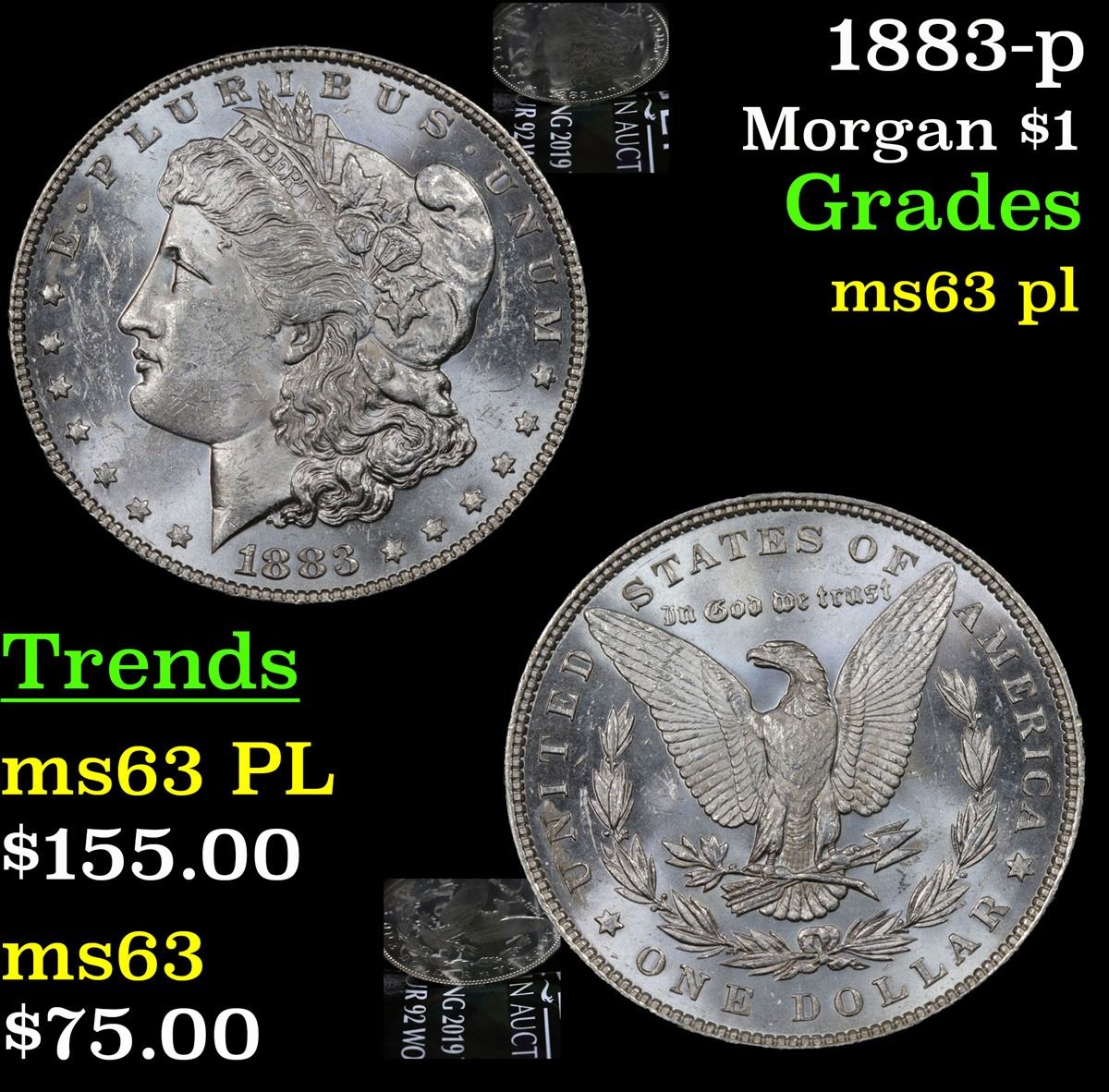 1883-p Morgan Dollar $1 Grades Select Unc PL.