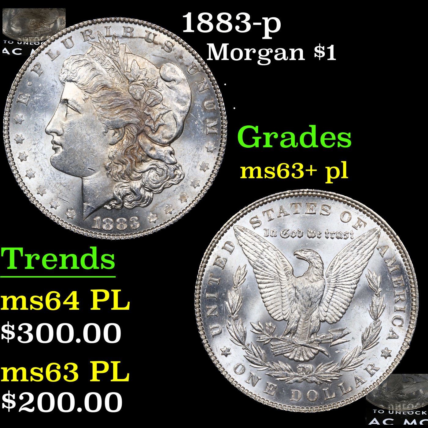 1883-p Morgan Dollar $1 Grades Select Unc+ PL.