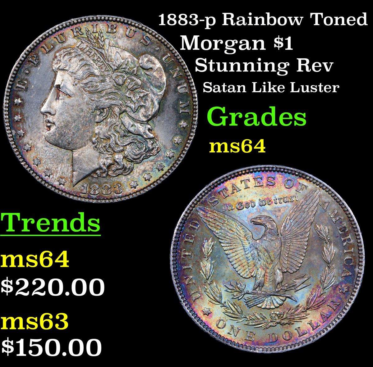 1883-p Rainbow Toned Morgan Dollar $1 Grades Choice Unc.