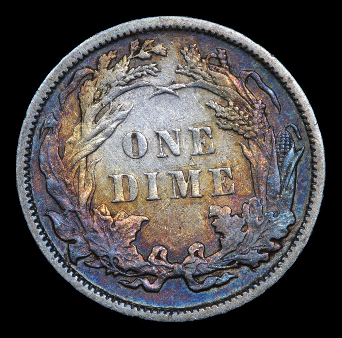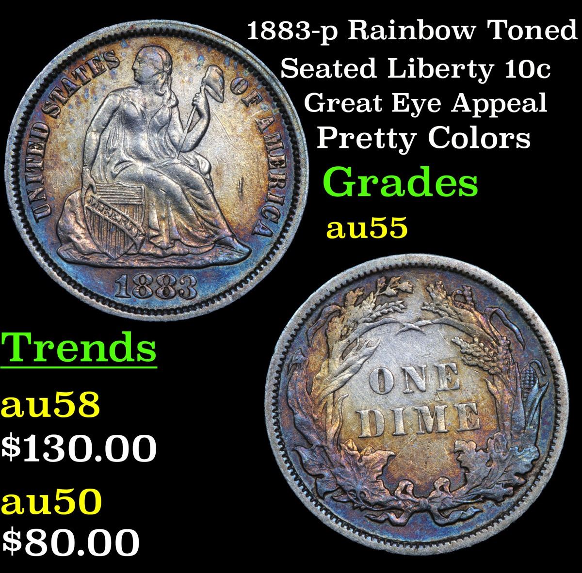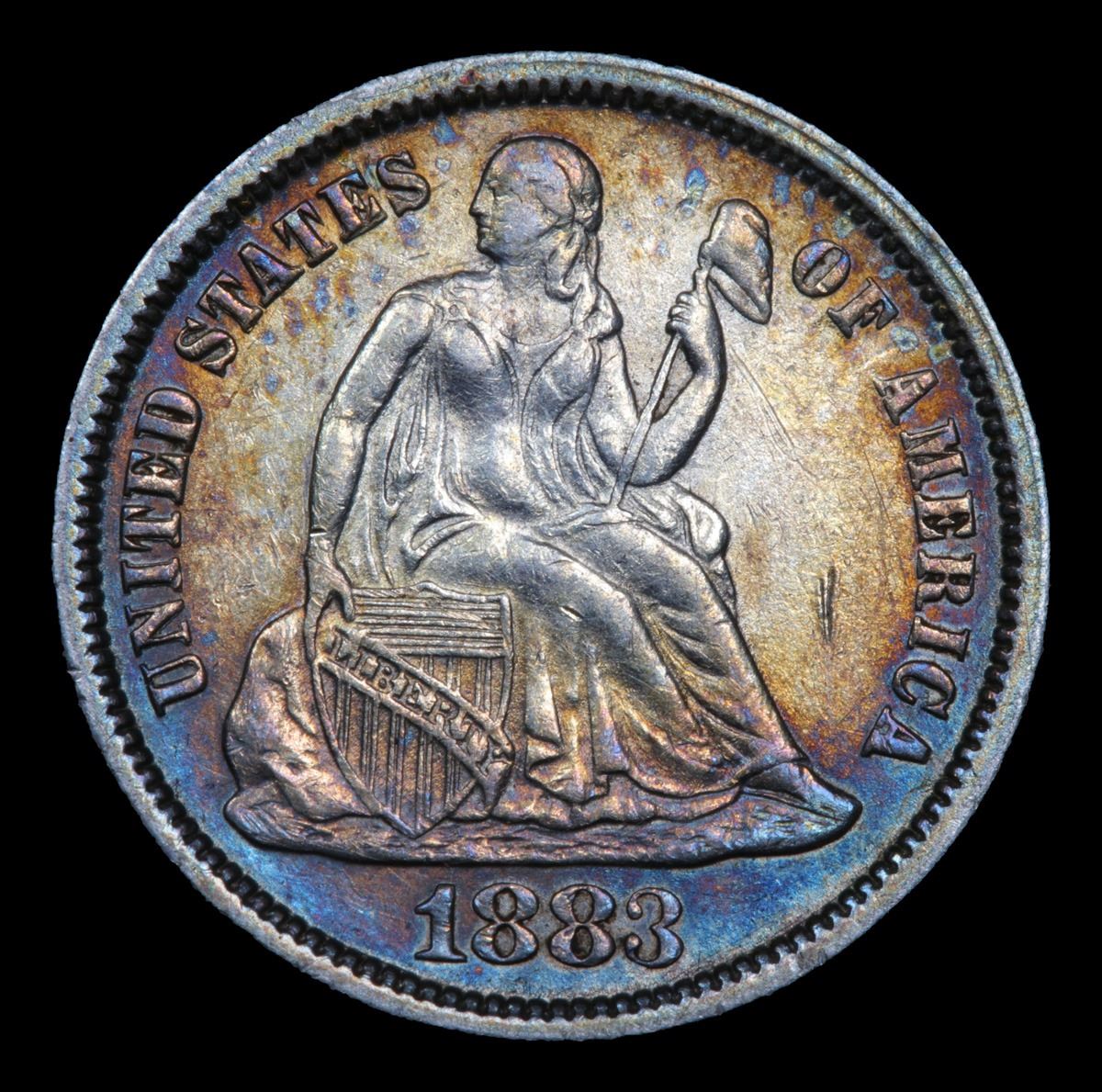 1883-p Rainbow Toned Seated Liberty Dime 10c Grades Choice AU.