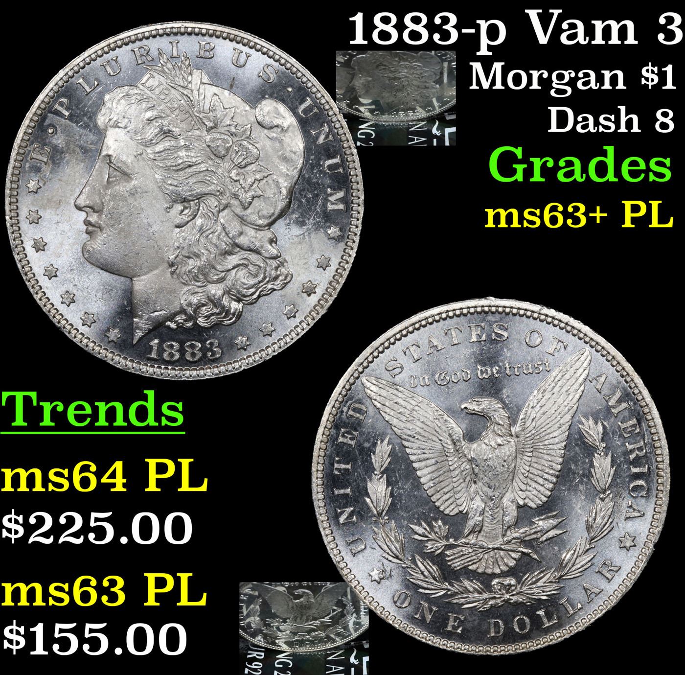 1883-p Vam 3 Morgan Dollar $1 Grades Select Unc+ PL.