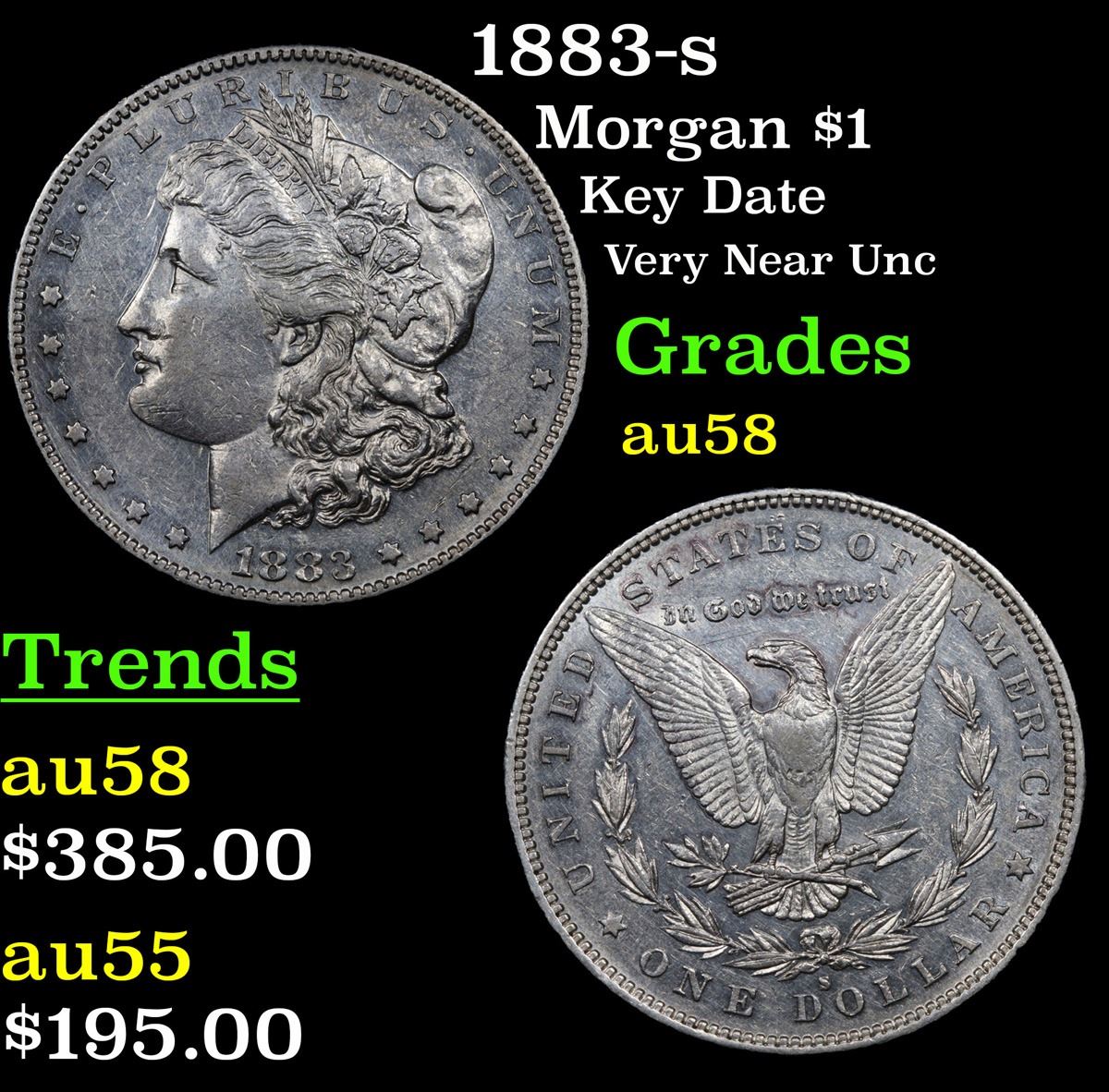 1883-s Morgan Dollar $1 Grades Choice AU/BU Slider.
