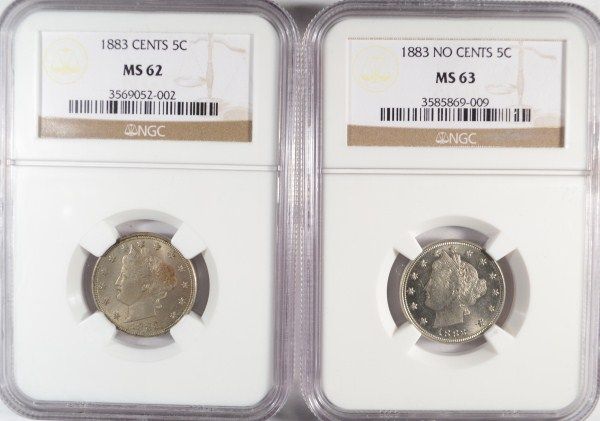 1883 with cents NGC62-83 N/C NGC63 V nickels est $190-$200