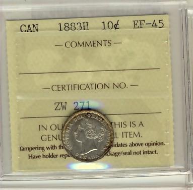 1883H 10¢ ICCS EF45. A nice and lustrous example.