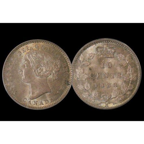 1883H 10¢ PCGS MS66, intense autumn shades over full lustre. Tied with only one other example for the finest graded by PCGS. A very rare item.