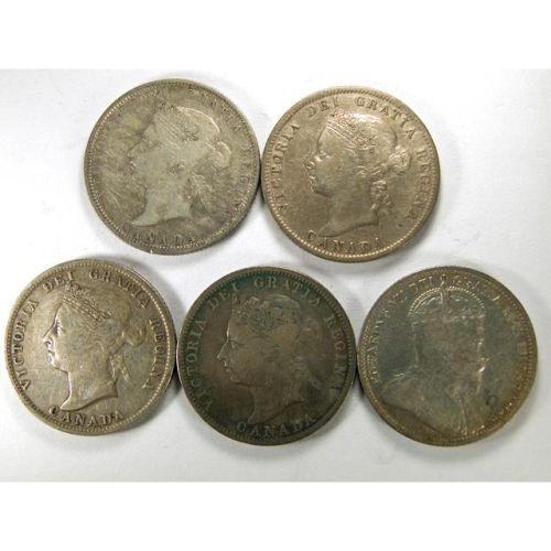 1883H, 1892, 1899, 1901 and 1903. Five lightly toned pieces, all Fine or better