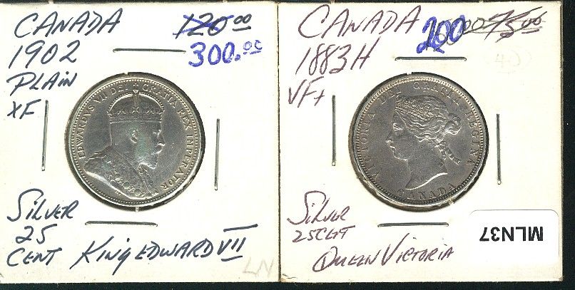 1883H 25¢ & 1902. Lot of 2 coins both VF with light lustre.