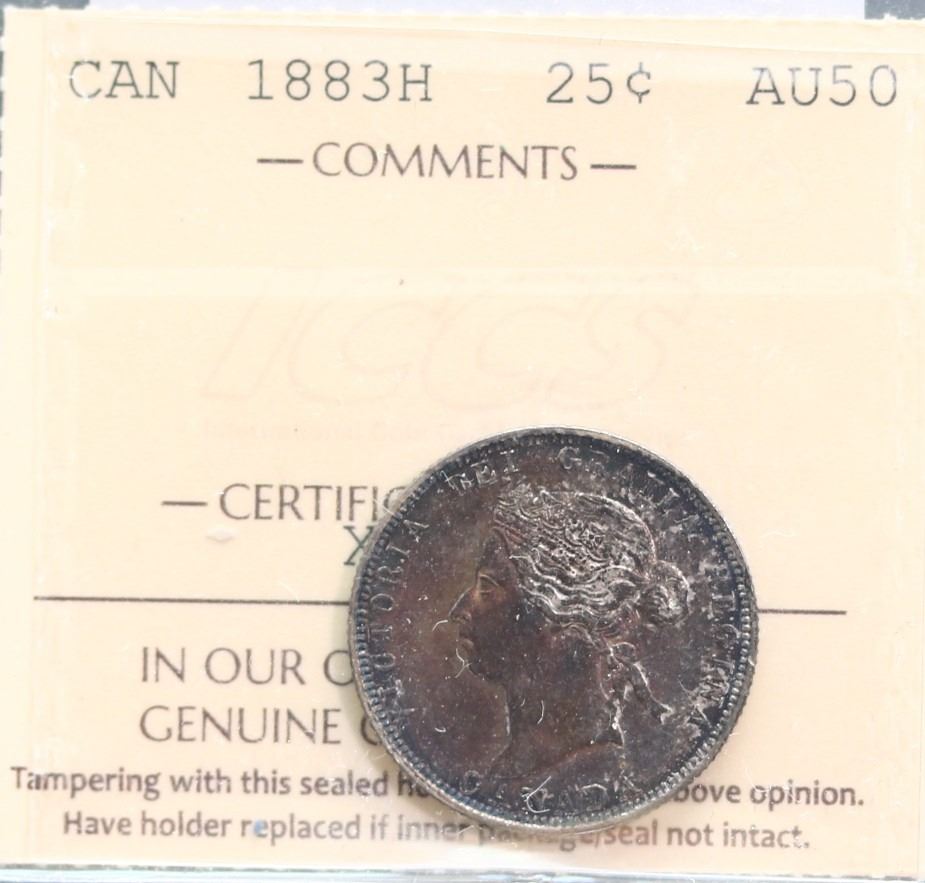 This is an Internet, Live Internet, email, phone and mail auction sale conducted. Information provided by The Canadian Numismatic Company on our web site and in this catalog is strictly AS IS and/or strictly an opinion. No warranty given. Bids are per lot. No lots will be broken. Auction sales are not approval sales. All lots shall be sold to the highest bidder as determined by the auctioneer. If any dispute arises during the sale, the auctioneer has the right to reopen the lot and put it up for sale again. The auctioneer’s decision will be final. In the case of identical (tied) bids during our Live Auctions, the earliest received bid shall take priority. In the case of a tie bid during our Sales, between a mail/fax bid and an Internet bid, the Internet bid will take precedence and obtain the lot. PLEASE CONTACT US IF YOU REQUIRE FURTHER EXPLANATION.