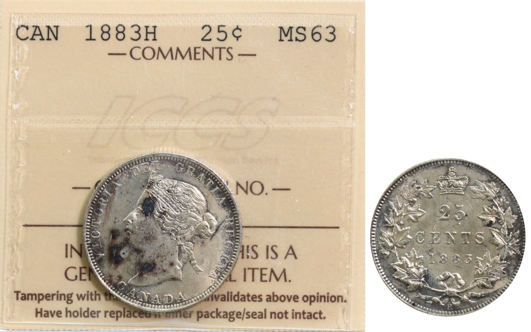 1883H 25¢ ICCS Choice Mint State-63. A nice and attractive example.