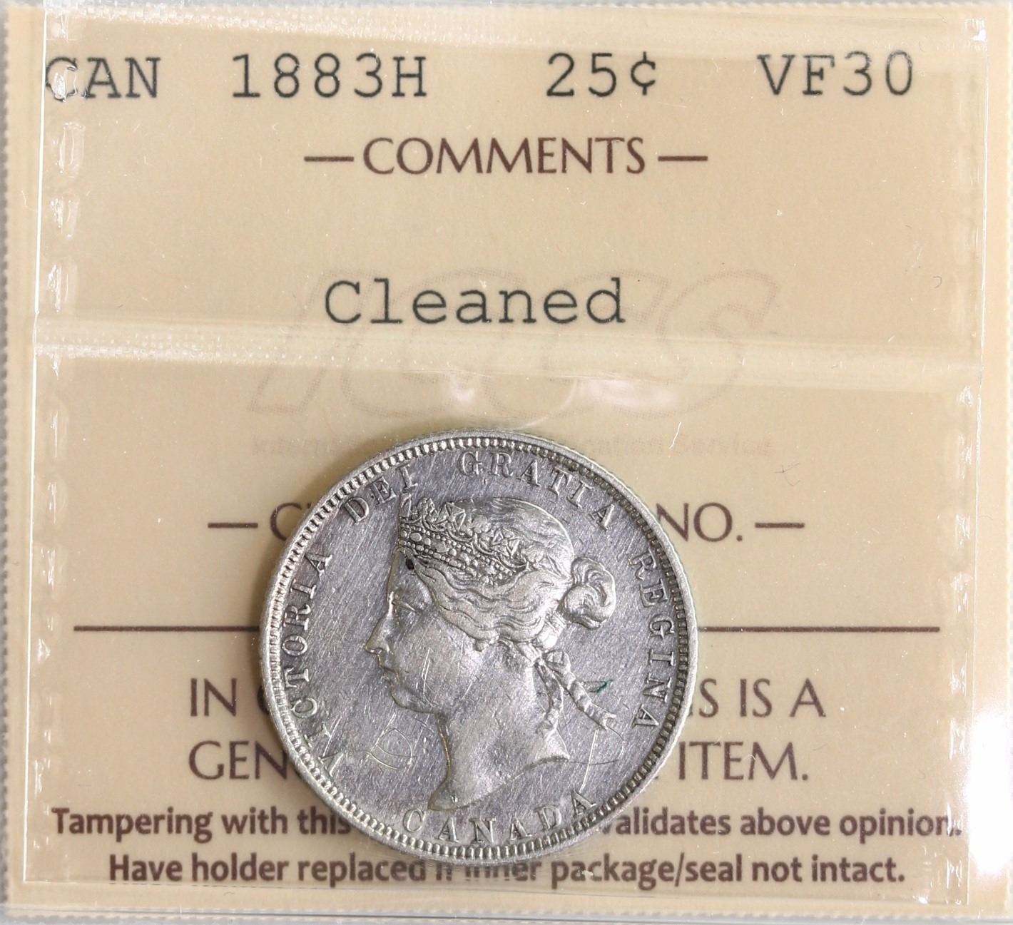 1883H 25¢ ICCS Choice Very Fine-30, lightly cleaned. Still a nice piece.