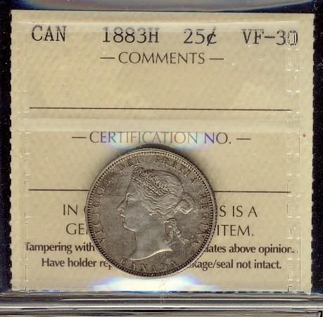 1883H 25¢ ICCS VF30.