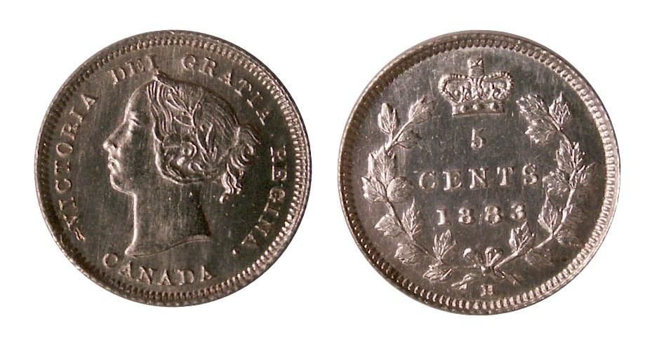 1883H 5¢ ICCS MS62. Full white issue. Only 5 examples finer.
