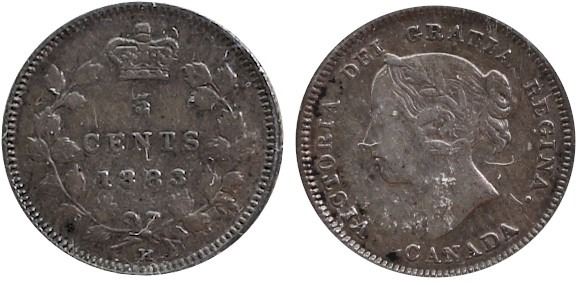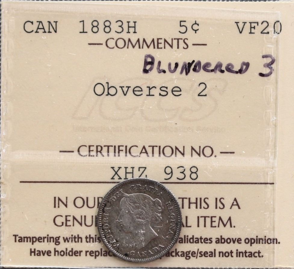 1883H 5¢ ICCS Very Fine-20. (Blundered 3). See Pic.