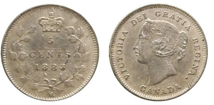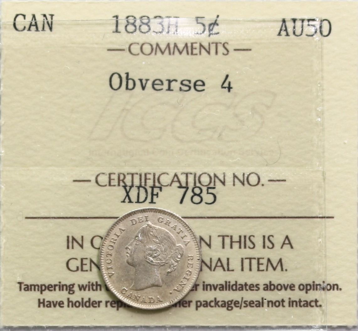1883H 5¢ "Obv.4" ICCS About Uncirculated-50 rare obverse type rarely seen and offered in this condition. Brilliant and lustrous.