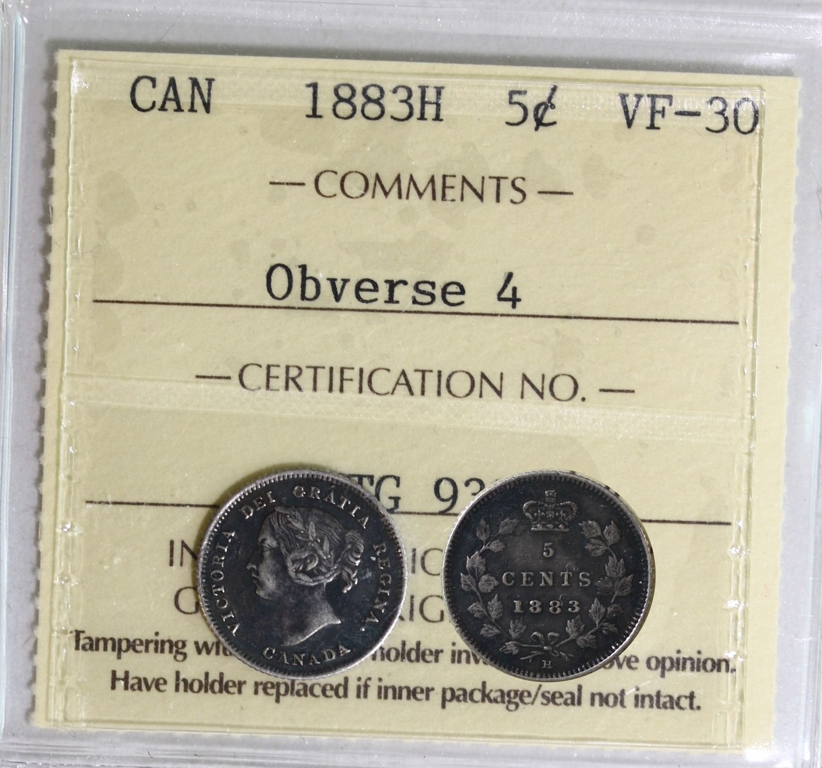 1883H 5¢ "Obv.4" ICCS Choice Very Fine-30