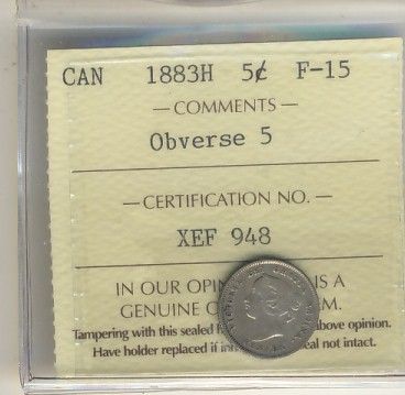 1883H 5¢ Obv 5 ICCS F15. Semi key date.