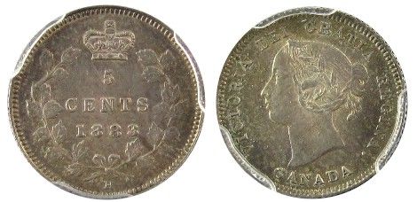 1883H 5¢ PCGS MS63, a lovely example with nice eye appeal. Rare date.