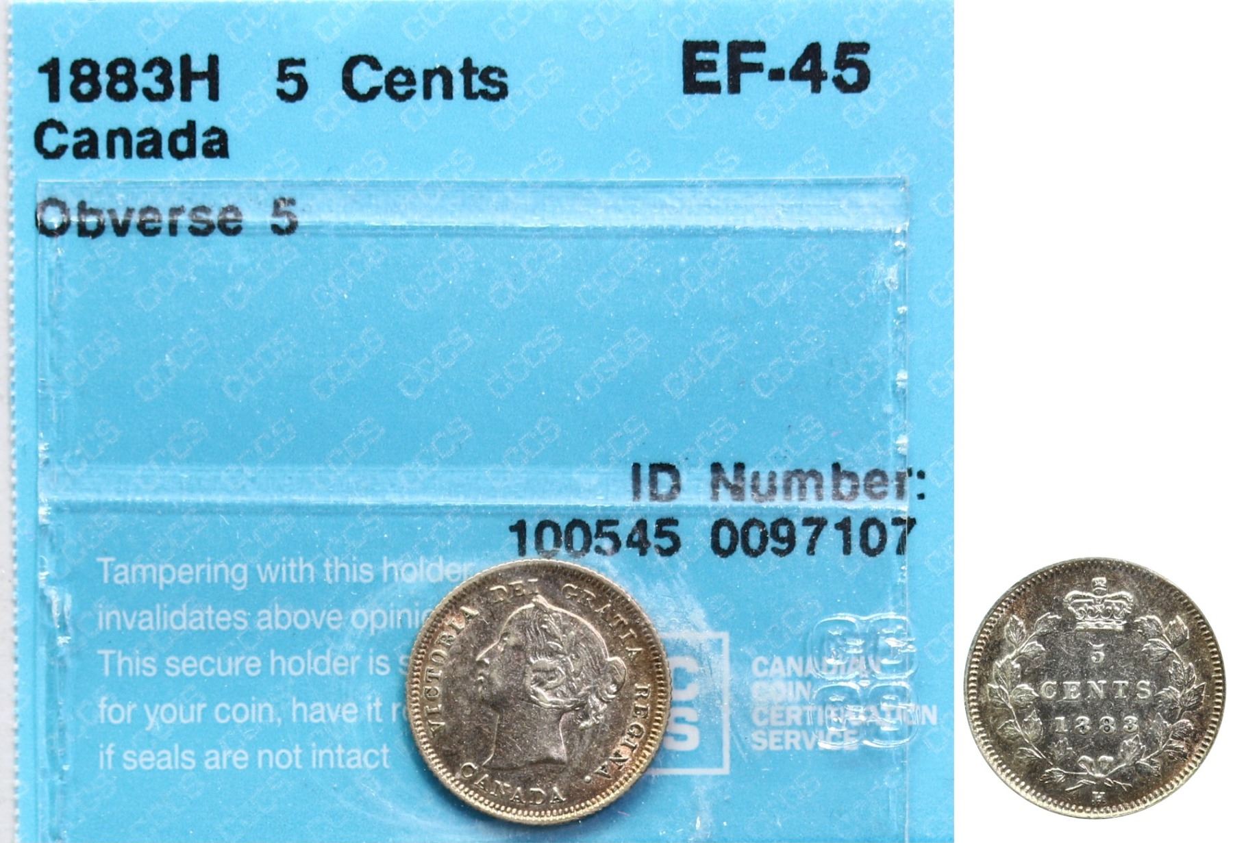 1883H "Obv.5" 5¢ ICCS Choice Extra Fine-45 Brilliant and lustrous with light golden tone.