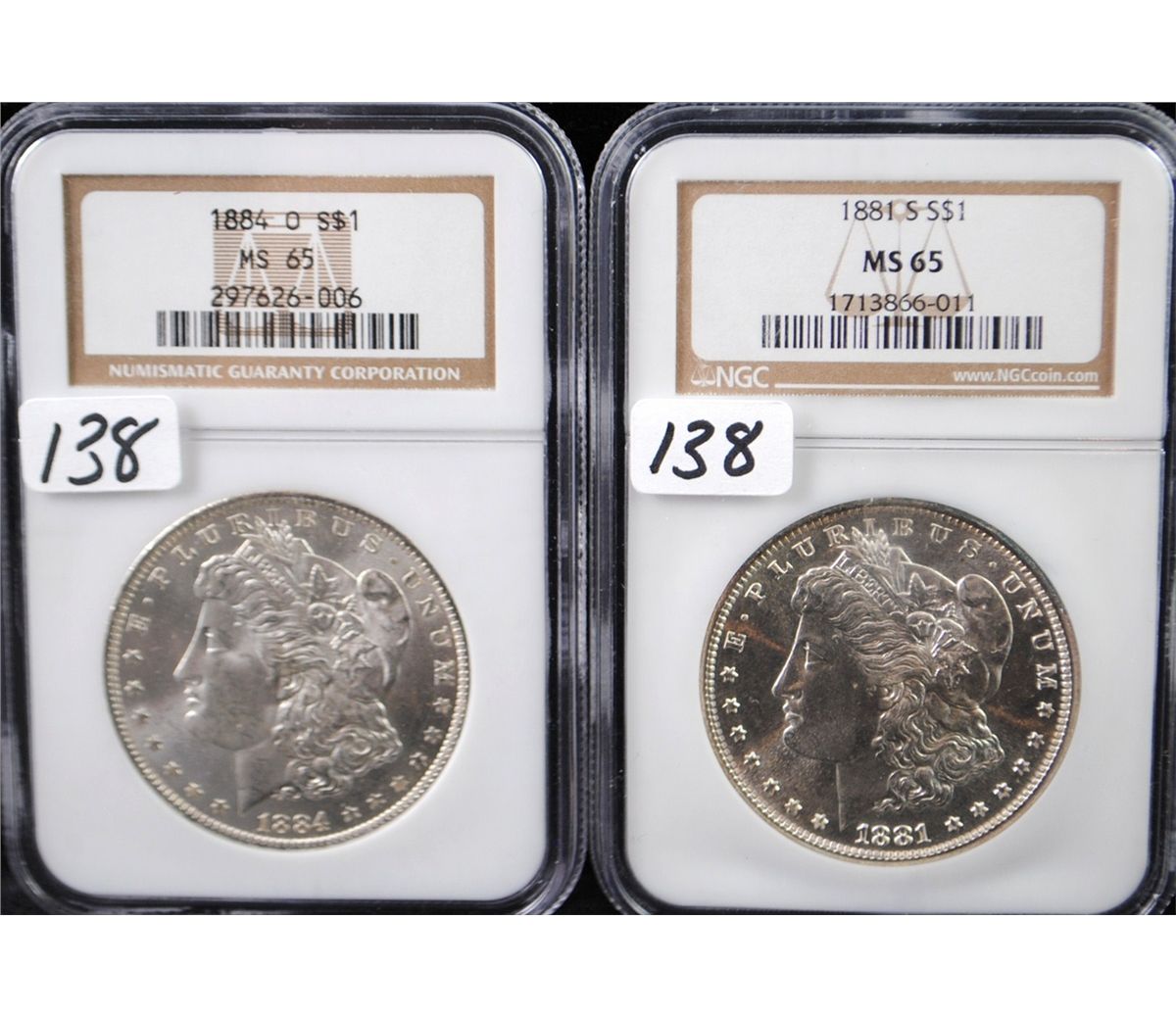 1884-0 & 1881-S MORGAN DOLLARS - NGC MS65 - SOLD PER COIN TIMES 2