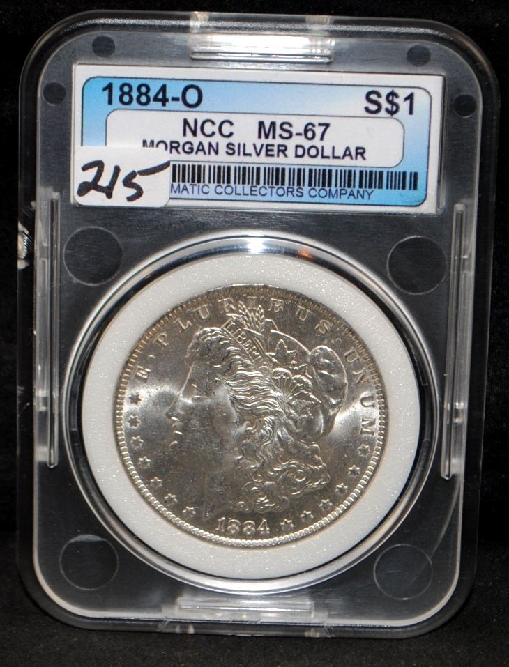 1884-0 MORGAN DOLLAR - NCC MS67 (PCGS PRICE GUIDE LISTS AN MS67 @ $3,250.00)