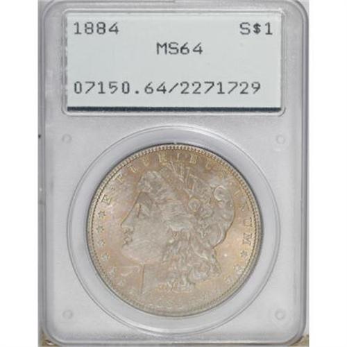 <B>1884 $1 MS64 PCGS.</B></I> PCGS Population (4073/2139). NGC Census: (4996/1917). Mintage: 14,070,875. Numismedia Wsl. Price for NGC/PCGS coin in MS64: $58. (#7150)<BR><BR><B>Coin Engraver:</B> George T. Morgan<BR><BR><b>Shipping:</b> Coins & Currency (<a target="_blank" href="http://www.heritageauctions.com/common/shipping.php">view shipping information</a>)