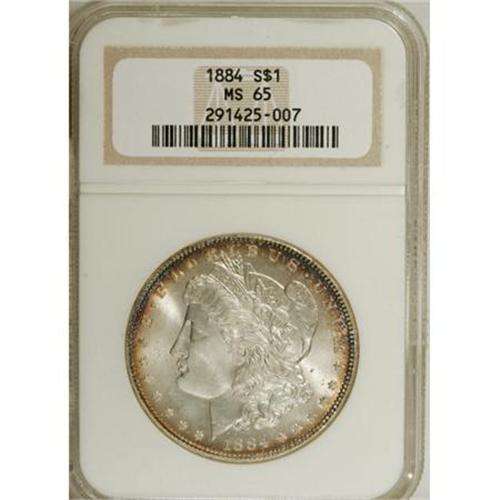 <B>1884 $1 MS65 NGC.</B></I> NGC Census: (1595/309). PCGS Population (1756/366). Mintage: 14,070,875. Numismedia Wsl. Price for NGC/PCGS coin in MS65: $192. (#7150)<BR><BR><B>Coin Engraver:</B> George T. Morgan<BR><BR><b>Shipping:</b> Coins & Currency (<a target="_blank" href="http://www.heritageauctions.com/common/shipping.php">view shipping information</a>)