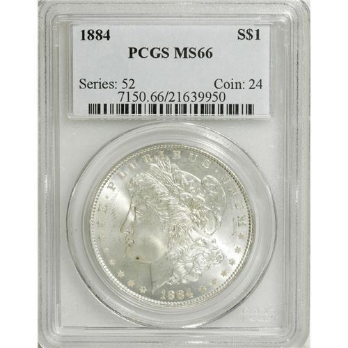 <B>1884 $1 MS66 PCGS.</B></I> PCGS Population (341/29). NGC Census: (270/32). Mintage: 14,070,875. Numismedia Wsl. Price: $675. (#7150)<BR><BR><b>Shipping:</b> Coins & Currency (<a target="_blank" href="http://www.heritageauctions.com/common/shipping.php">view shipping information</a>)